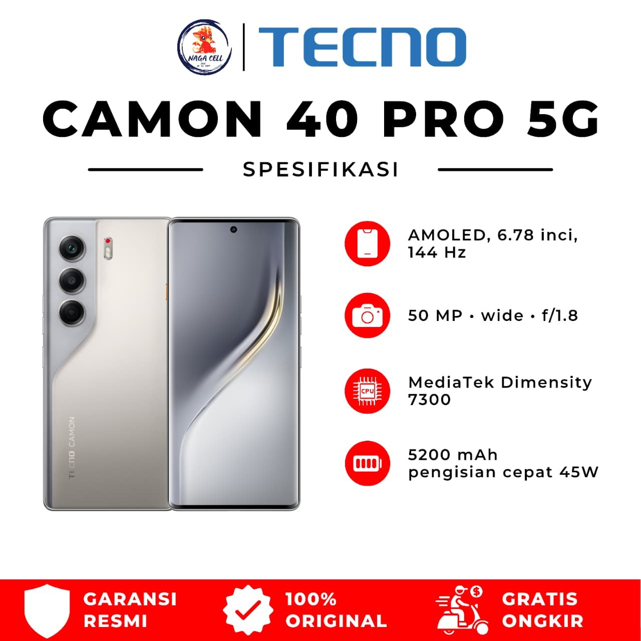Spesifikasi Utama: TECNO Camon 40 Pro 5G (Professional Camera Phone)